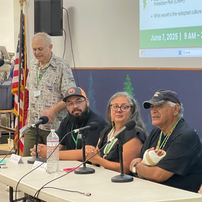 The first presentation panel, "Cultivating a Fire-Adapted Landscape and Culture in the Cobb Mountain Area Today" was offered by local Tribal members: Ron Montez - Tribal elder and Tribal Historic Preservation Officer, from the Big Valley Band of Pomo Indians, whose traditional territory includes the Cobb Mountain area, Corine Pearce - master Pomo basket weaver and eco-educator, and Jordan Reyes, member of the Middletown Rancheria of Pomo Indians, whose traditional territory also includes the Cobb Mountain area, and who is the Field Coordinator for the Lake County-based Tribal Ecosystem Restoration Alliance (TERA).